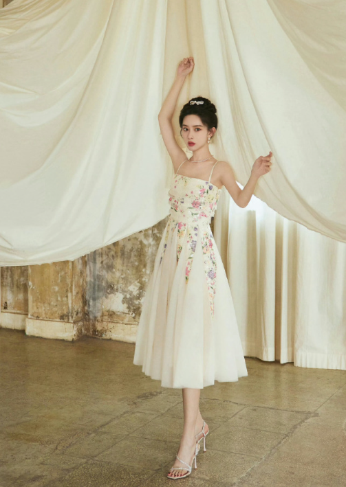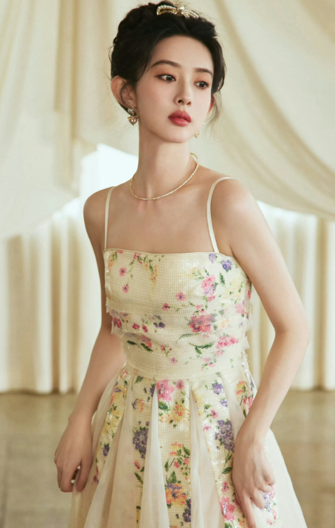 孟子义的碎花裙妆造,不是一般的明艳,孟姐的颜值,真没得说!