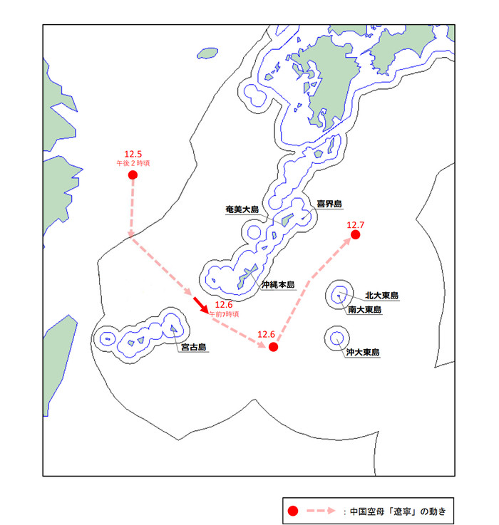 [文/观察者网专栏作者王世纯]根据日本防卫省发布消息,12月7号,中国海军辽宁舰航母战斗群沿琉球群岛以东海域北上,抵达喜界岛以东约190公里处。相较于前一天位置,辽宁舰北上约600公里。这是辽宁舰近年来首次通过宫古海峡以后北上航行。
